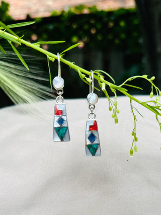 Crafted in Peru using traditional local materials, these exquisite earrings draw inspiration from the architectural shapes of the Inca era. As you explore the streets of Cuzco, Peru, you'll notice these familiar silhouettes, a testament to the thriving culture and appreciation for their rich heritage.