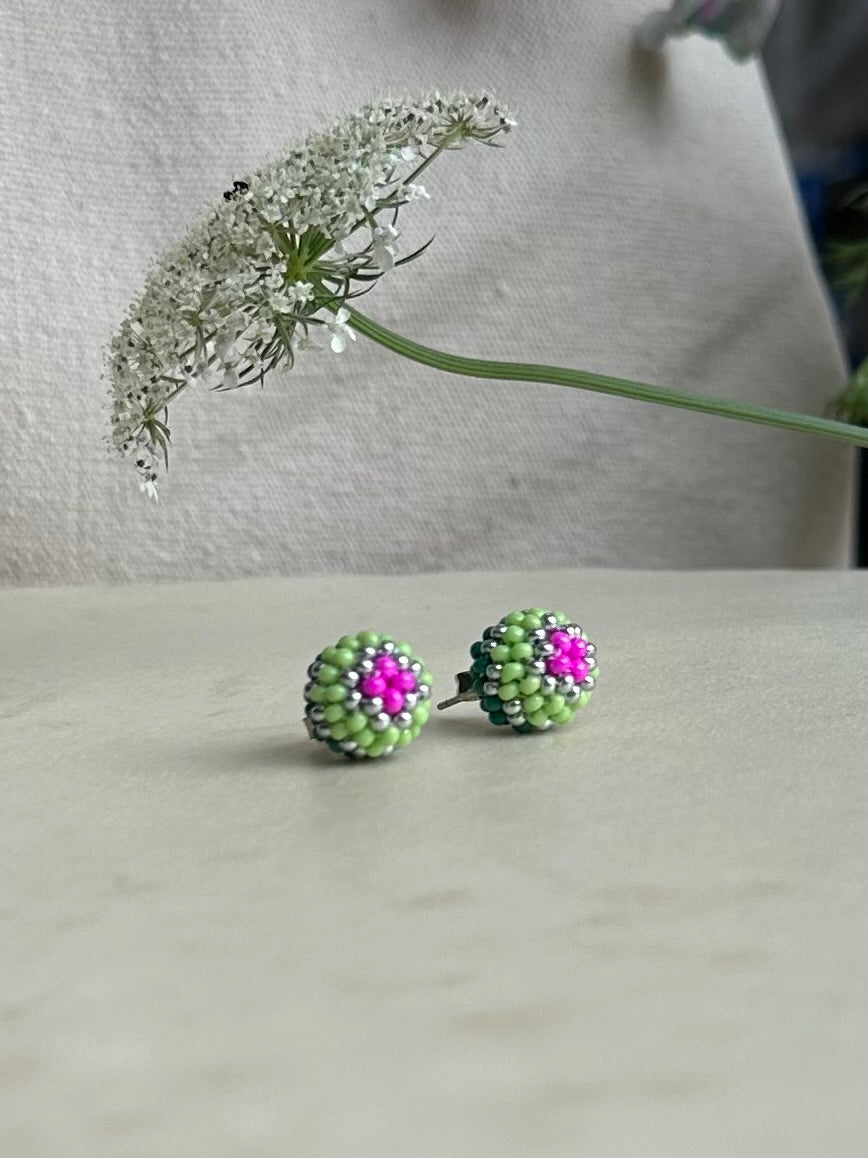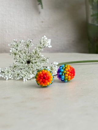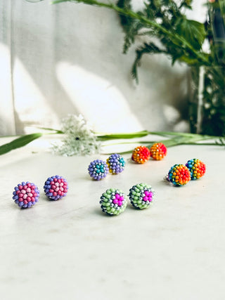 These beaded studs was lovingly made in Tkaronto by Patricia Cajas (Kichwa), owner and co-founder of Pacha Arts.
