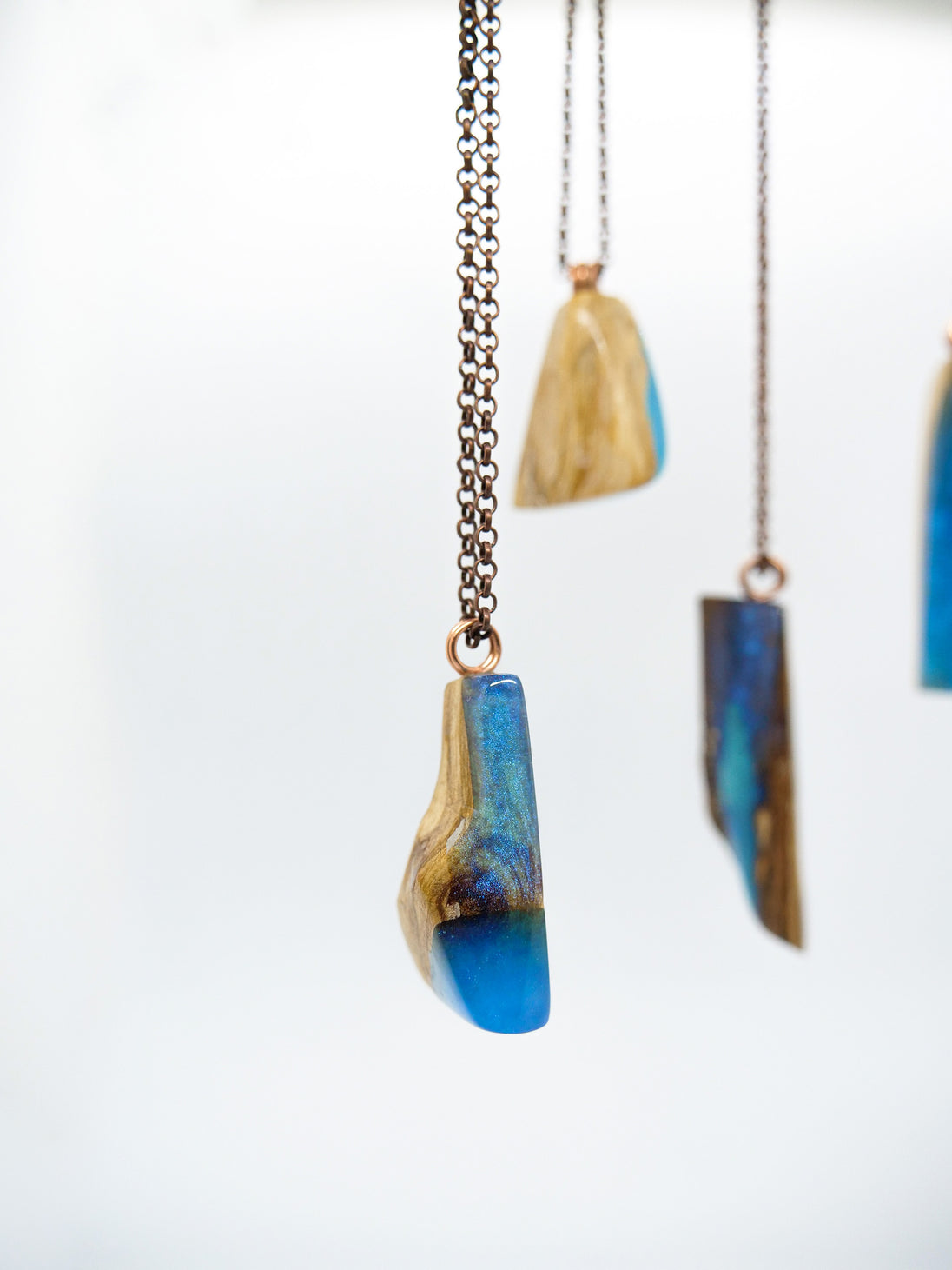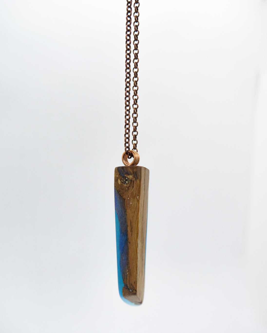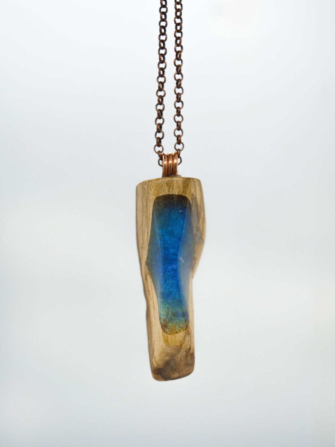 This wearable piece of art incorporates blue (water) resin into palosanto, reminding the wearer of the power of its medicine. While carrying out your daily activities, know you are held and protected. Rupashka means something that is burned in Kichwa, reflecting the way Palosanto is traditionally used.
