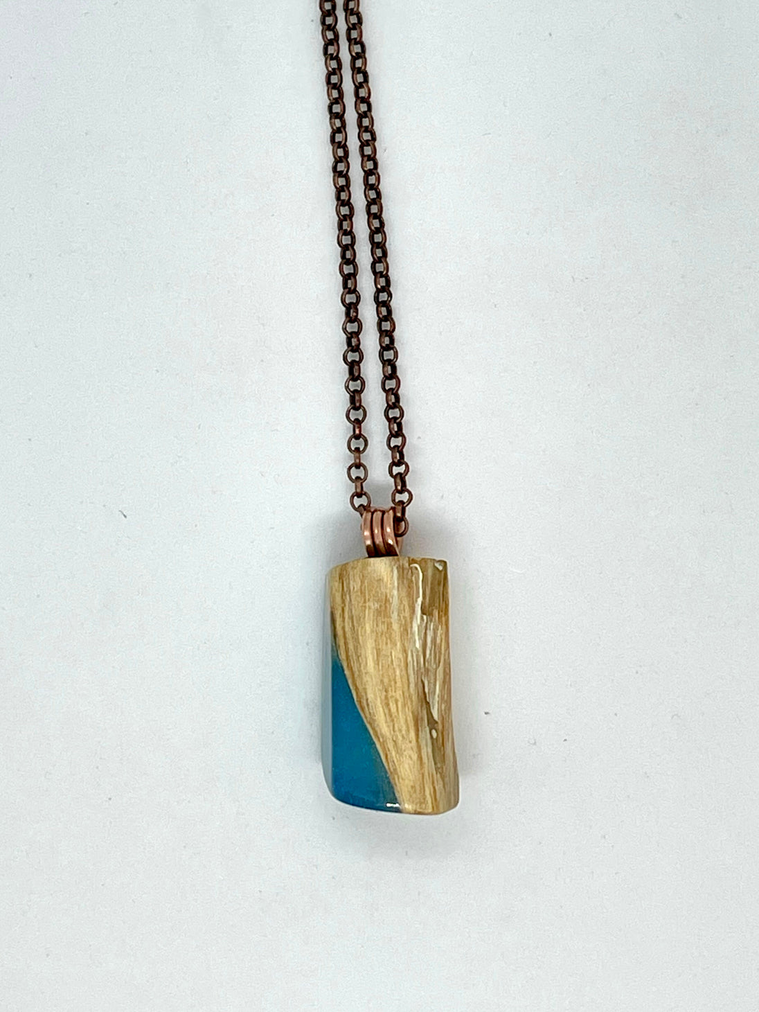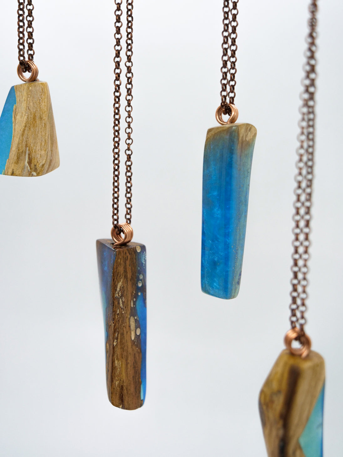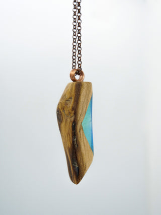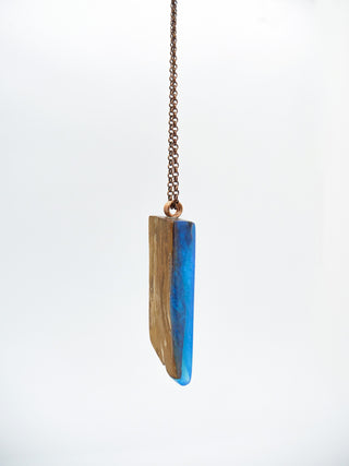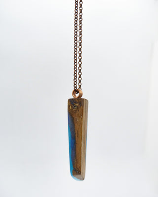 This wearable piece of art incorporates blue (water) resin into palosanto, reminding the wearer of the power of its medicine. While carrying out your daily activities, know you are held and protected. Rupashka means something that is burned in Kichwa, reflecting the way Palosanto is traditionally used.