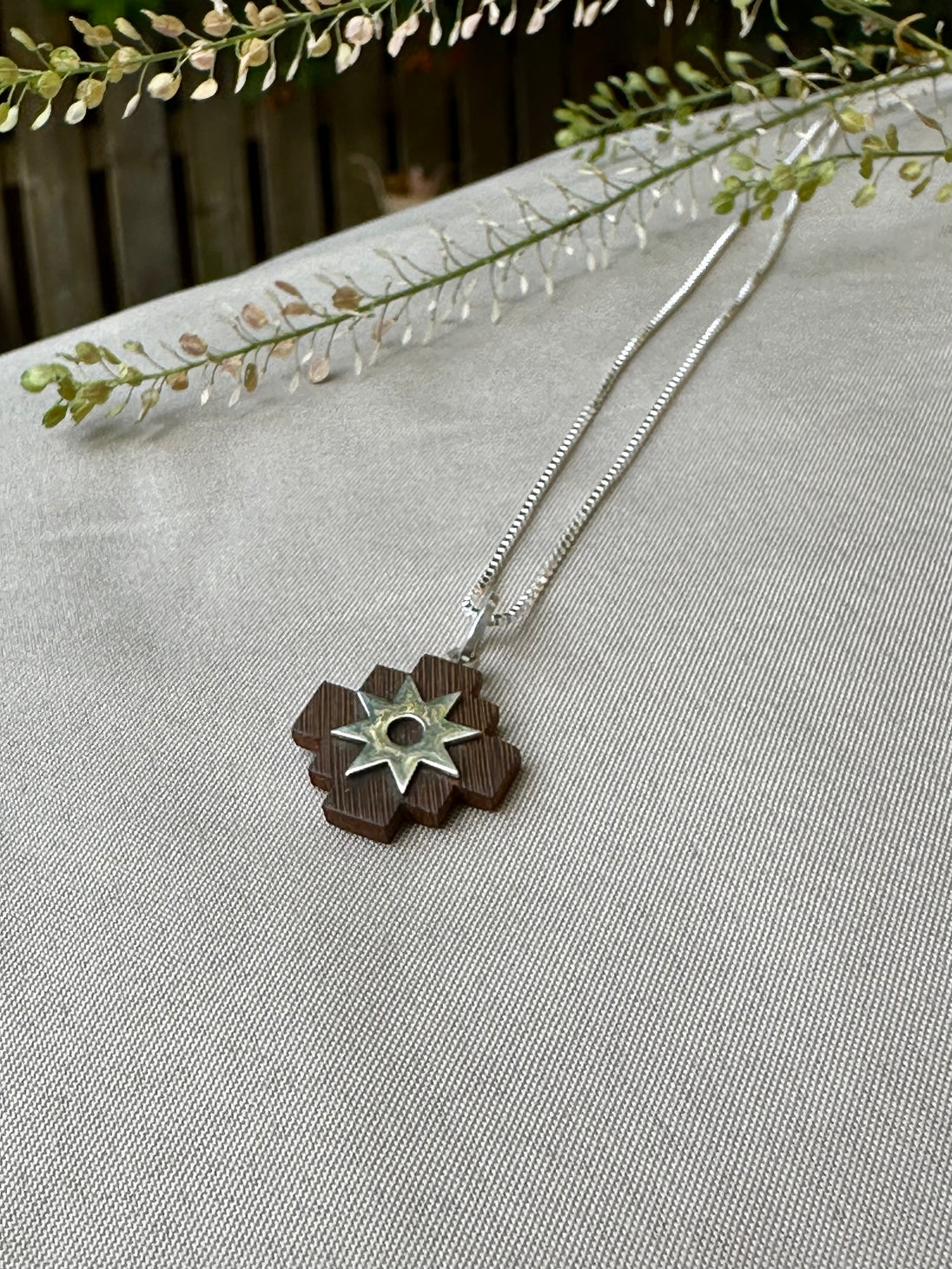 This pendant was carefully made in Peguche, Otavalo, Ecuador by self taught Kichwa artist Pedro Maldonado.