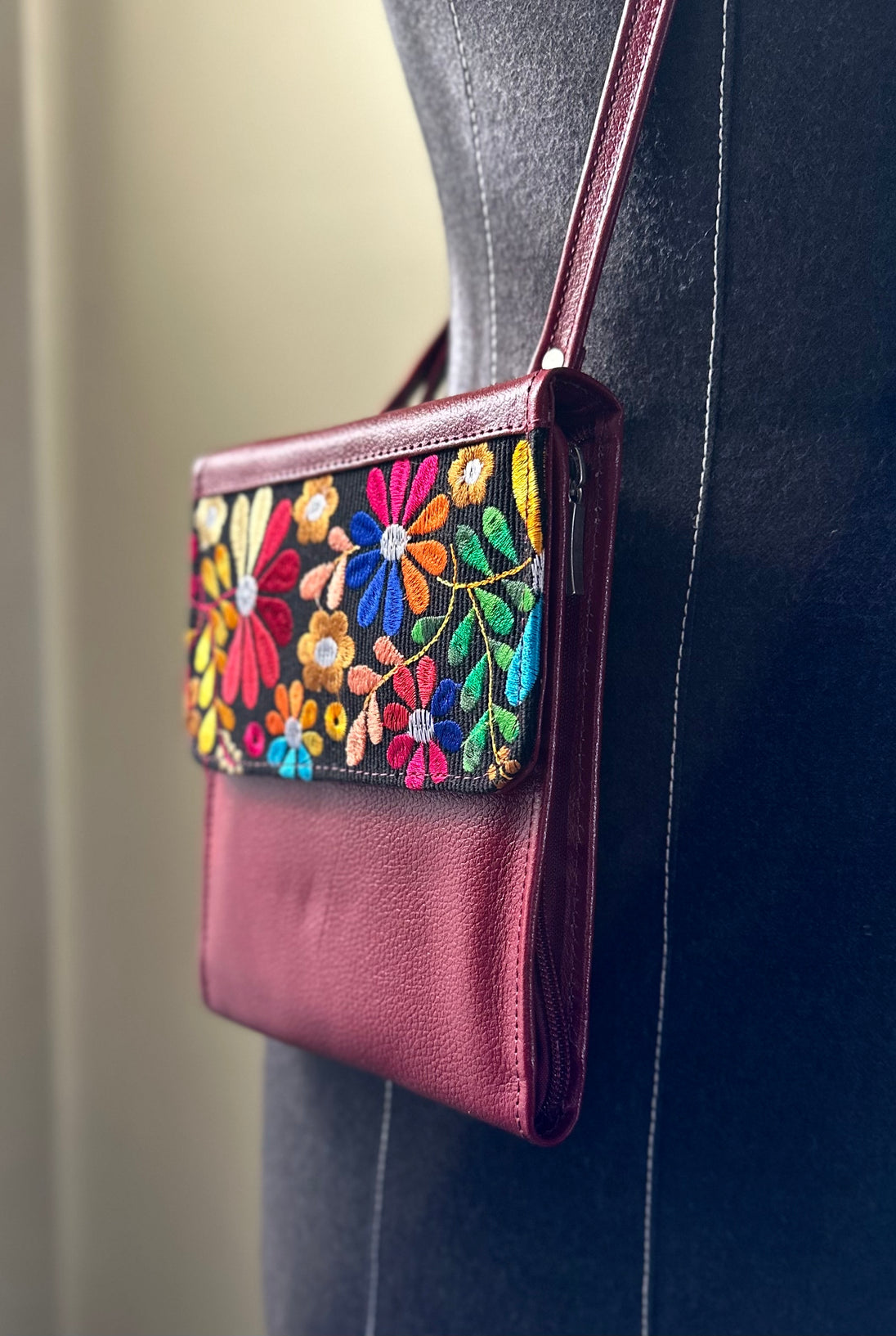 Experience the beauty and tradition behind our Tumarina Side Bag. The delicate embroidered flowers represent the ceremony of cleansing and renewal, while the adjustable leather strap and convenient design provide functionality. Embrace the culture while staying organized on-the-go.