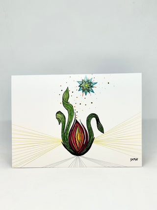 FLOWERING: An intricate drawing in pen and fine marker that explores the beauty of life forms. The drawing features a variety of interconnected lines and shapes that create the illusion of organic forms emanating energy. It is meant to remind you of the very essence of life itself. By @samay.c