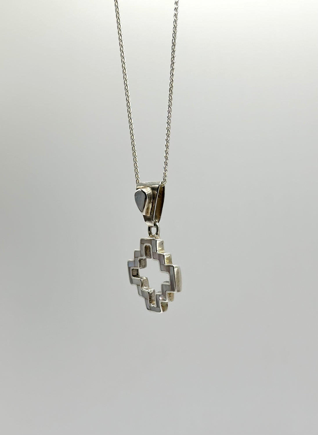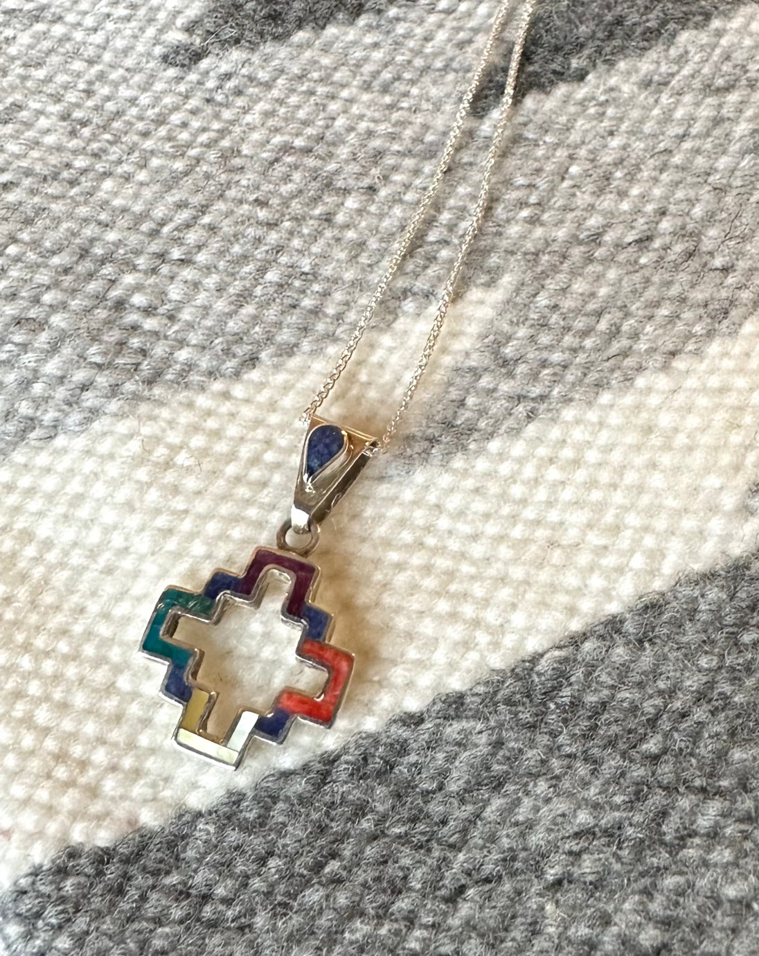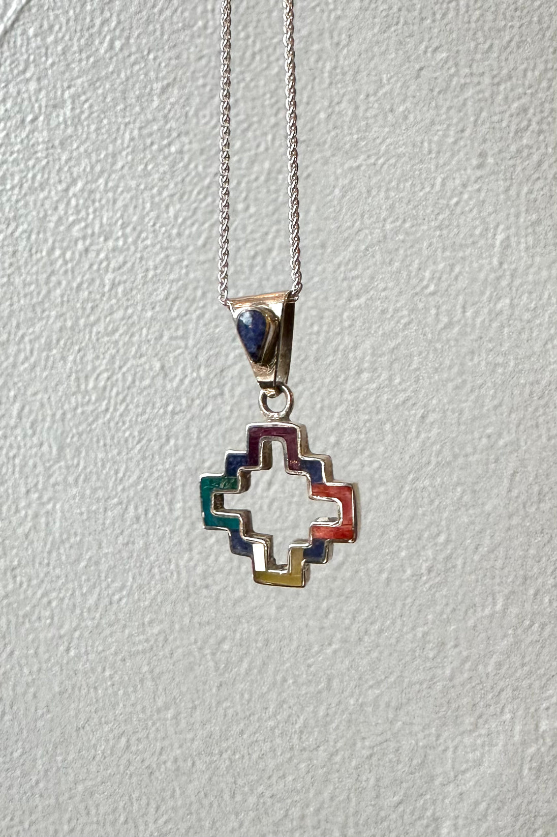 The Chakana is an important symbol in Andean cosmology. It signifies the balance between dualities (night and day, planting and harvesting time, etc.), as well as our connection to the land (pachamama), skies (pachakamak) and the four directions. It was used to measure the stars, as well as built structures. Today, it continues to be used in ceremony, woven into textiles, and into accessories to remind us of its important message.