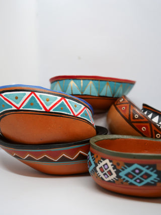 The symmetrical designs represent the mountains of the Andes, in honour and respect to the origin of the clay and how it was made. The natural colour of the red clay is also kept to highlight the earth’s beauty.