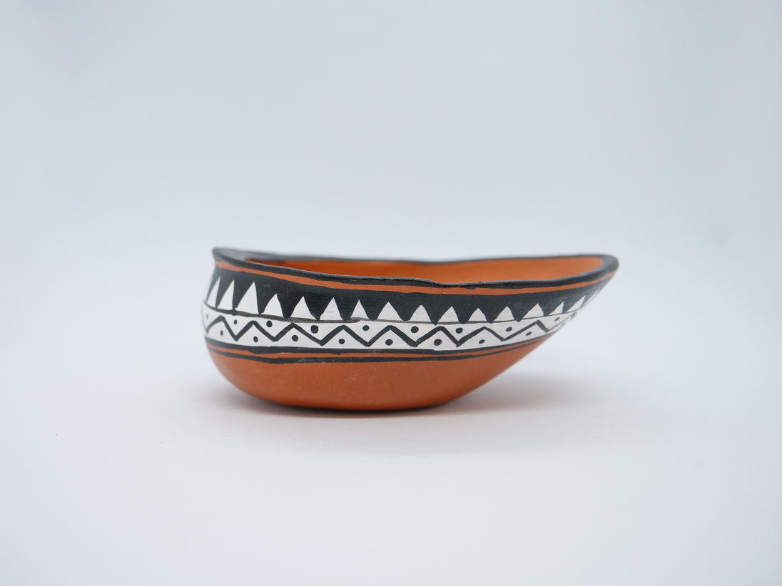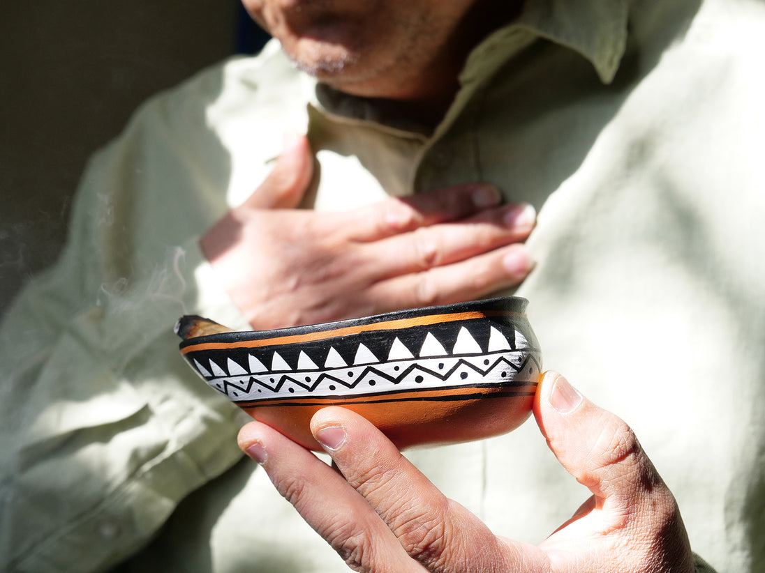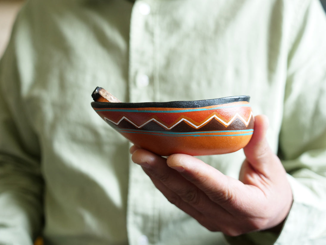 The Urku (meaning mountain in Kichwa) Bowl was made to find a sustainable alternative to abalone shell, as there is a great amount of overharvesting now hurting abalone shells and their ecosystem. It is made using local materials and traditional clay making techniques from the Quechua community of Pisac, Cuszo, Peru. It is a collaboration between clay master Don Vicente Quispe (who keeps this clay making ancestral tradition alive) and Marcos Arcentales, creator behind jewellery line Bone & Quill.