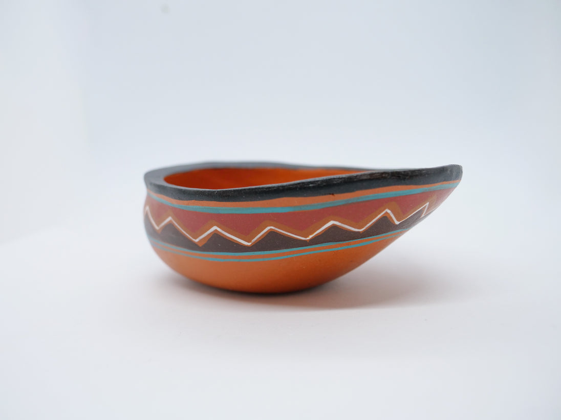 This bowl is inspired by the shape of the abalone shell, which is often used for smudging. Smudging happens by burning different elements such as sage sticks, sweet grass braids or palo santo sticks. The smoke that comes from the medicine can cleanse, support, and protect, depending on which intention you set or traditional teachings given to you.