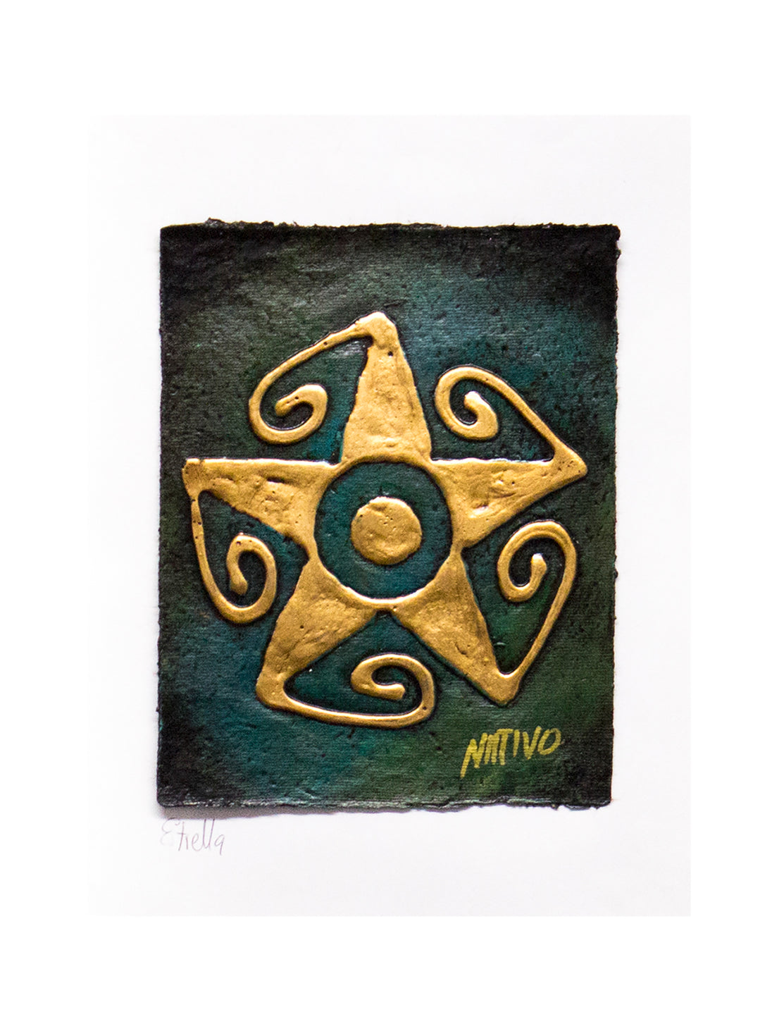 Juan Garcia, also known by his artist name Nativo, was born in San Antonio de Ibarra, a small town in the Andes of Ecuador. He studied at the School of Arts “Daniel Reyes”, one of the oldest schools of arts in South America. He is well known for making the pre-Colombian motifs prominent in his art. These motifs tell the story about the forces of nature, animals, as well as human relation to the universe. His inspiration comes from deep connection to his roots and Ecuadorian history.