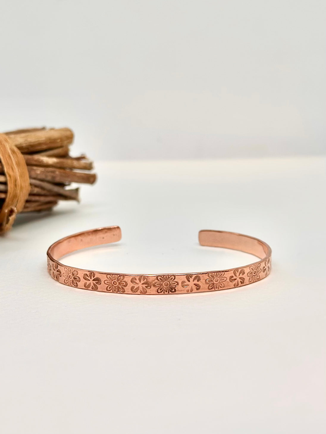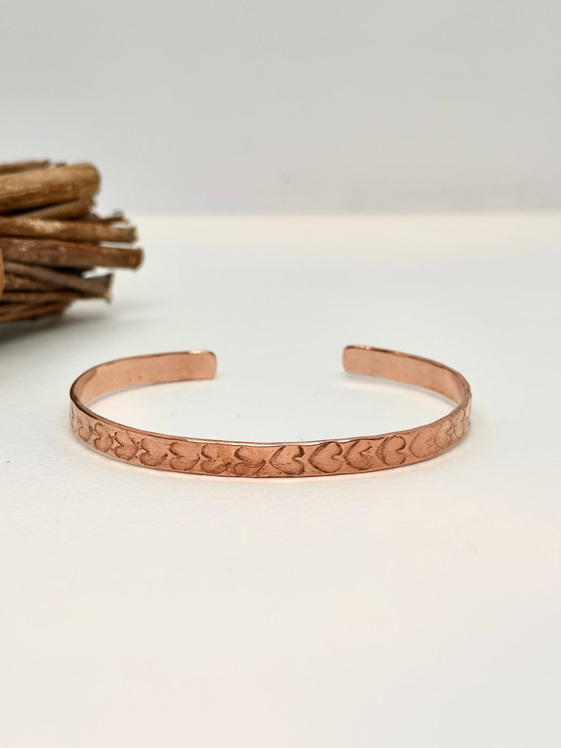 Crafted from pure copper, this elegant bracelet combines timeless artistry with purposeful design. Copper has long been valued for its potential to support healthy circulation and provide comfort for those managing arthritis. The refined finish and thoughtful construction make it a sophisticated accessory that works beautifully with any wardrobe while serving as a daily wellness companion. An understated yet meaningful piece that honors both tradition and wellbeing.