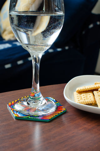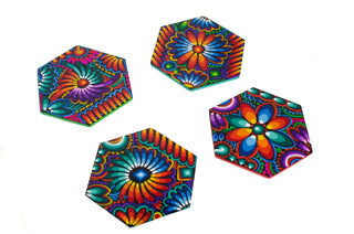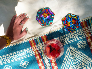Each coaster is crafted and hand-painted with passion by talented artisans of the Tigua community nestled in the beautiful Andes Mountains. These coasters are inspired by the vibrant designs found on ceremonial drums, celebrating Inti Raymi (Summer Solstice)
