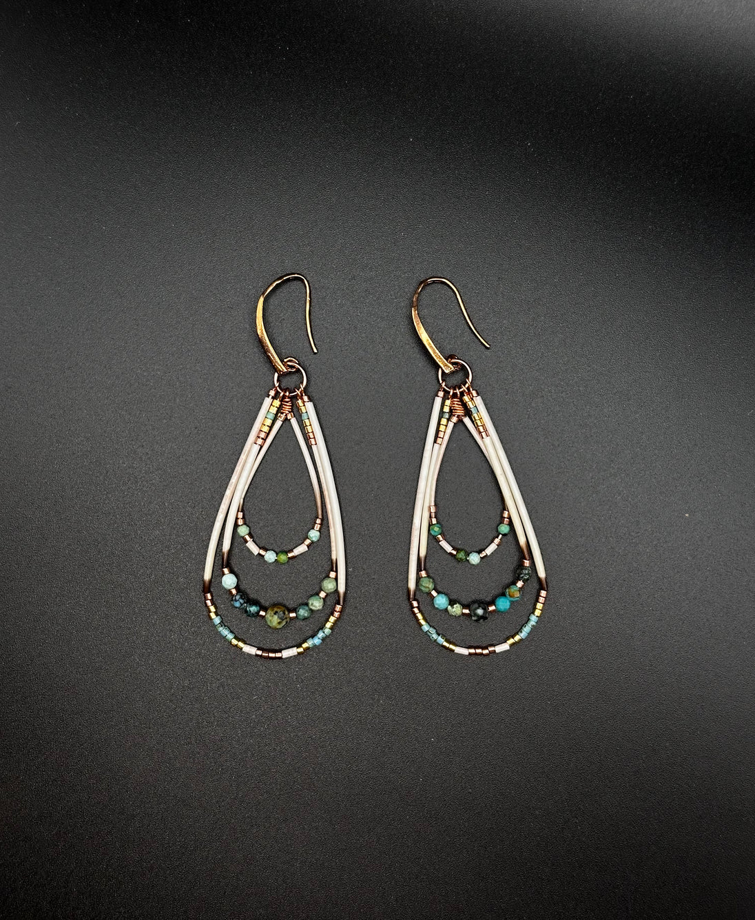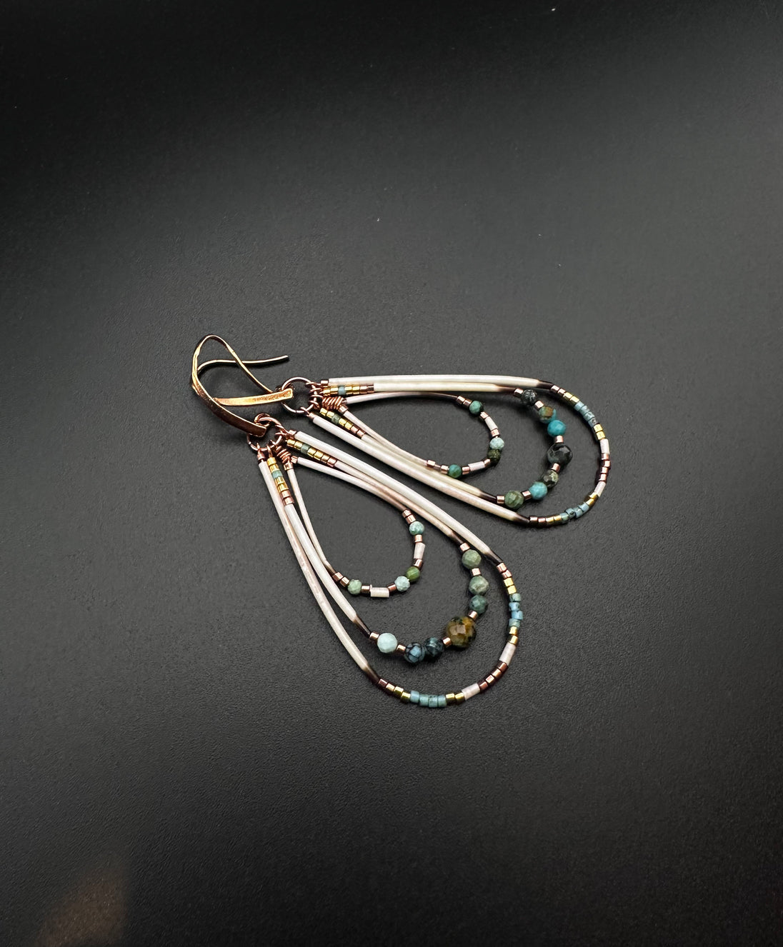 Introducing the Triple Hoop Quill Earrings – the most stunning design Bone & Quill has created yet. Refined with porcupine quill and natural stones, these earrings catch the light beautifully. A subtle yet distinctive addition to your jewelry collection, they will lend your ensemble an air of subtle sophistication.
