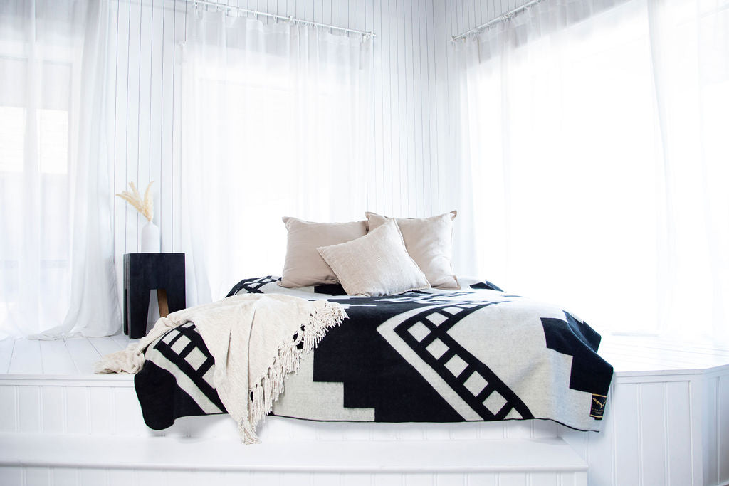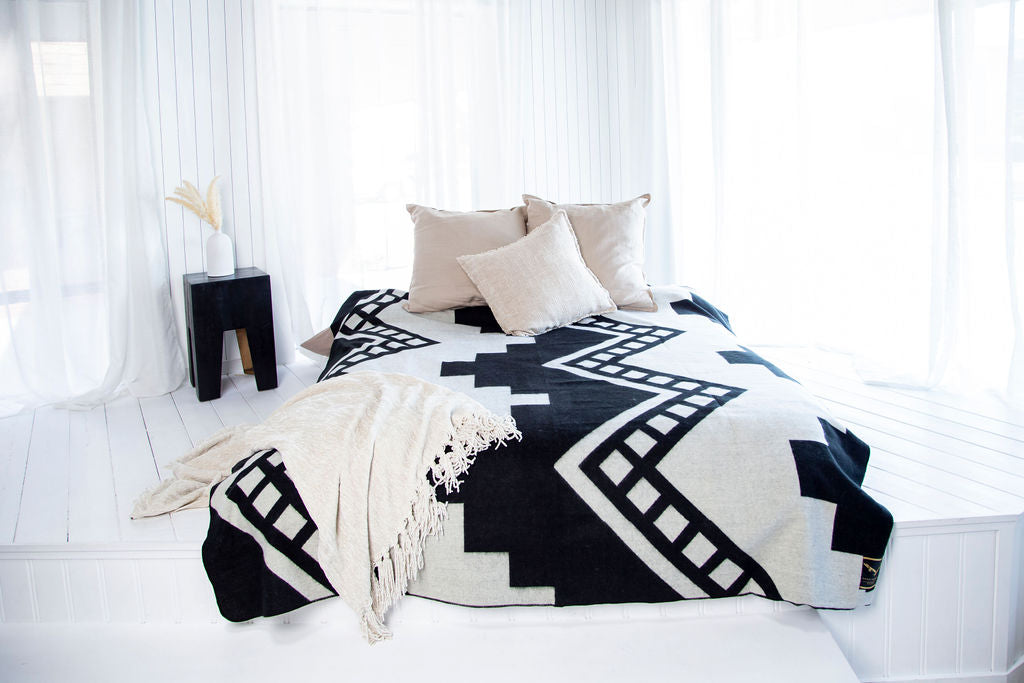 Blanket Designed by Yana Manta (Kinoo Arcentales Cajas). Made by the Lema Family in our Kichwa homelands. The entire production line of this collection is indigenous owned and operated.