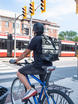 The design of these fabrics are a result of a lifetime of relearning a love for community, a love for the uplifting of all indigenous communities, whether you are from the north, south, east or west. These bags are meant to be worn proudly by all.