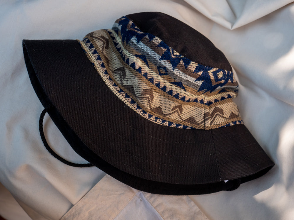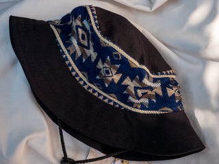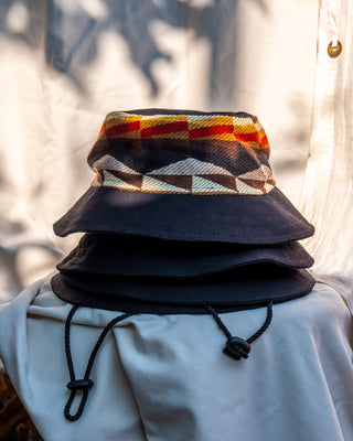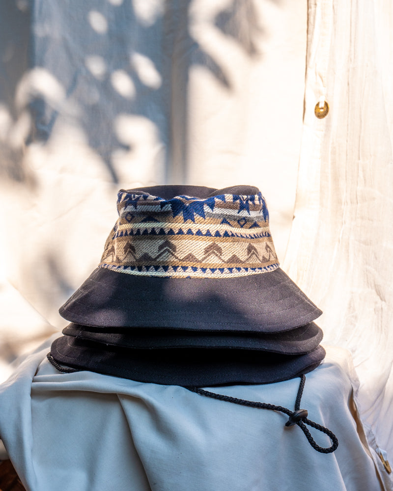 Rock this limited edition bucket hat, handmade in our studio using textiles made in our home community: Peguche. Stand out from the crowd while supporting artisanal craftsmanship. Because it's hand done with reusable pieces of fabric, all hats are unique!