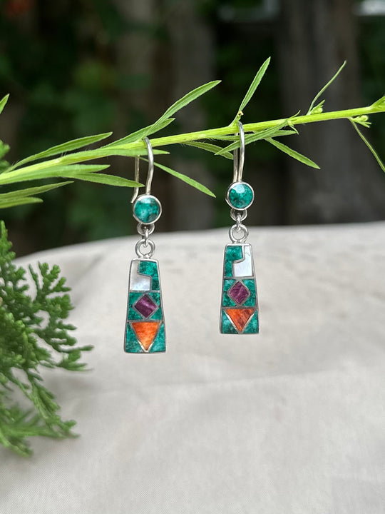 Materials: 950 Silver, Abalone, Chrystacolla, Spondylus shell, Sodalite Dimensions: Length: 2.7 cm (hook not incl.); 4 cm with hook Width: 1.4 cm (at widest)Regular price $84.99 -