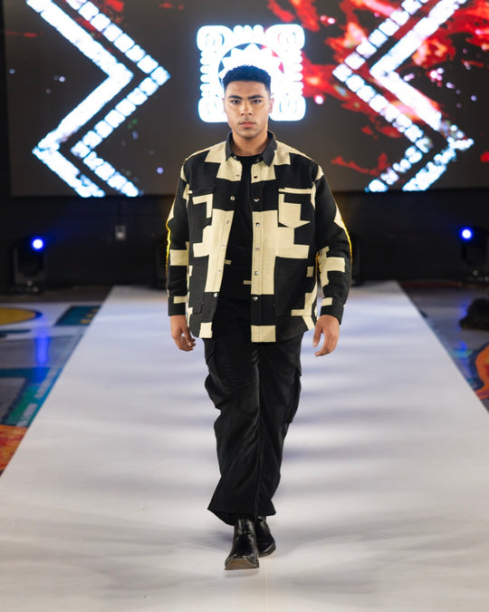 VIEW SHIPPING NOTE AT BOTTOM OF DESCRIPTION The Cabin Jacket embodies Indigenous Futurism, merging ancestral Andean geometry with a bold contemporary silhouette. Designed by Yana Manta (Kinoo Arcentales Cajas) and locally produced in collaboration with Kichwa...Regular price $444.99 -