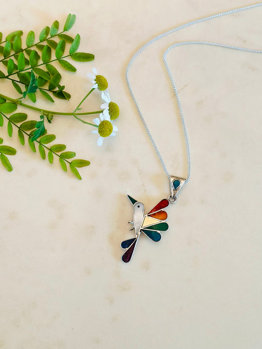 Hummingbird is a symbol of joy, happiness and love. It teaches us to laugh, enjoy and appreciate the magic of being alive. Materials: Silver 950 , Spodylus & Abalone shell, Sodalite & Chrysacolla semi precious...Regular price $144.99 -