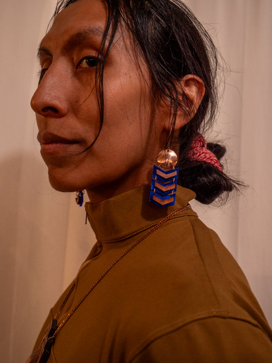 Inspired by celestial energies, these earrings reflect rays of the moon, who influence who and how we are as peoples. They were debuted at Indigenous Fashion Arts Materialize Runway 2024. Made with aromatic red cedar, these...Regular price $92.00