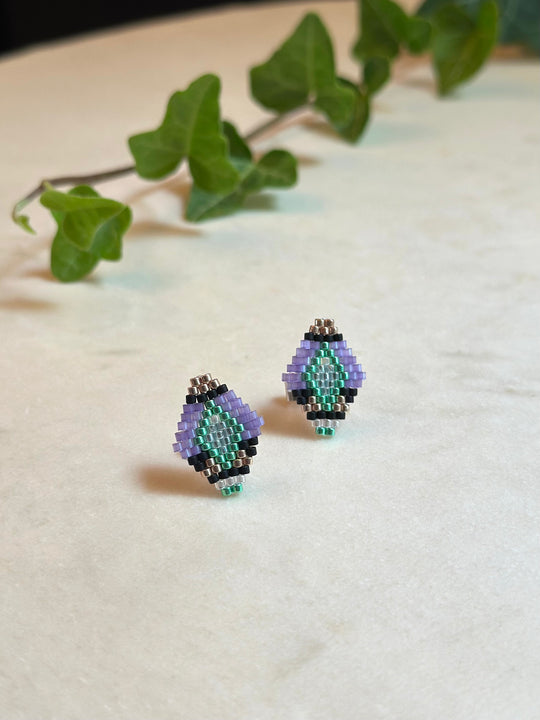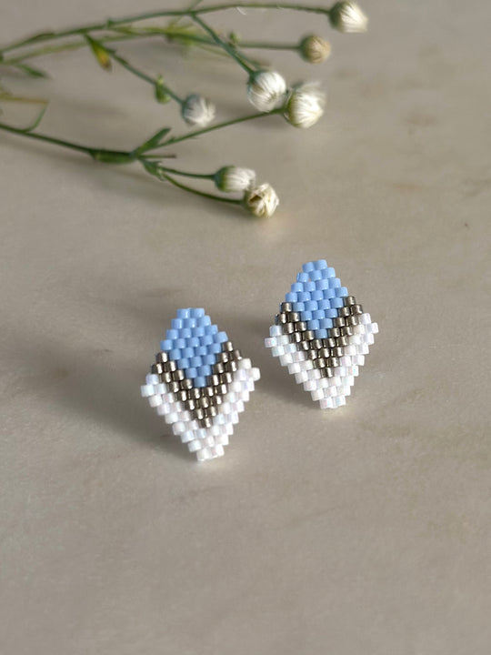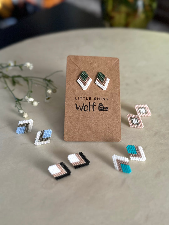 Cute mini studs to add a little shine to your every day wear. Made by Little Shiny Wolf ❤️ Materials: Size 11 delicas, white gold plated post Dimensions (Excluding Hooks): Length: 2 cm Width: 1.5 cm ____________________________...Regular price $34.99 -