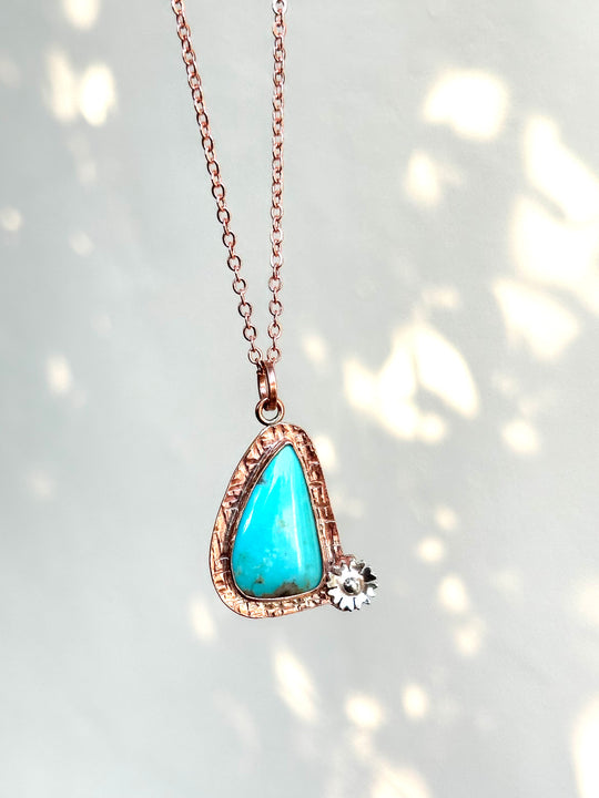 This product was carefully made in Peguche, Otavalo, Ecuador by self taught Kichwa artist Pedro Maldonado. Materials: Copper, Silver 950, Amazonite, Turquoise Dimensions: Turquoise1: Length 2 cm , Width 1.7 cm (hoop not included) ...Regular price From $64.99