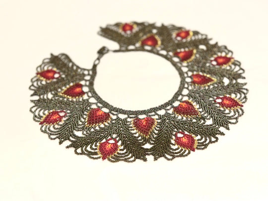This product was made in Saraguro, Ecuador, by kichwa women who wear traditional necklaces in similar shape, but make new contemporary designs, advancing an indigenous aesthetic into something more modern. Materials: 11/0 Beads Dimensions: Inside Diameter:...Regular price $234.99 -
