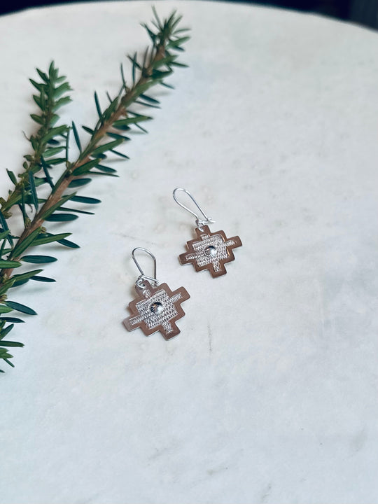 This product was carefully made in Peguche, Otavalo, Ecuador by self taught Kichwa artist Pedro Maldonado. Materials: Copper, Brass Hooks Dimensions: Length (incl. hook): 3.2 cm Width: 1.7 cmRegular price $44.99