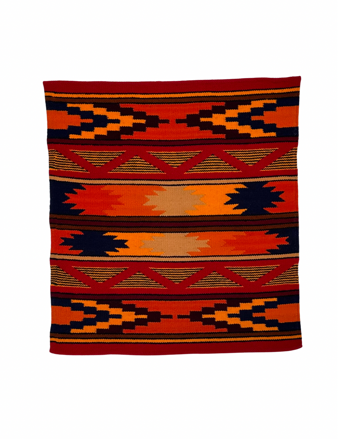 Kichwa people from Peguche, Ecuador are the master weavers of the region. Up on the highlands of the Andes, the members of this community are completely dedicated to the manufacturing of textiles and the agricultural activities. The stunning colors of the tapestries are part of the legacy and knowledge of the natural dyes. Master weavers from this region use different plants of the region: Toctes (dark nut shell) for all the brown and black tones, Cochinilla (cactus fungus) for the blue and purple colors, Achiote (red seeds which are used for Andean cuisine as well) gives red and terracotta colors. Each tapestry is manually woven on a wooden loom. Given the quality and the skill of the master weavers, each of the textiles is a masterpiece, made to last for decades.