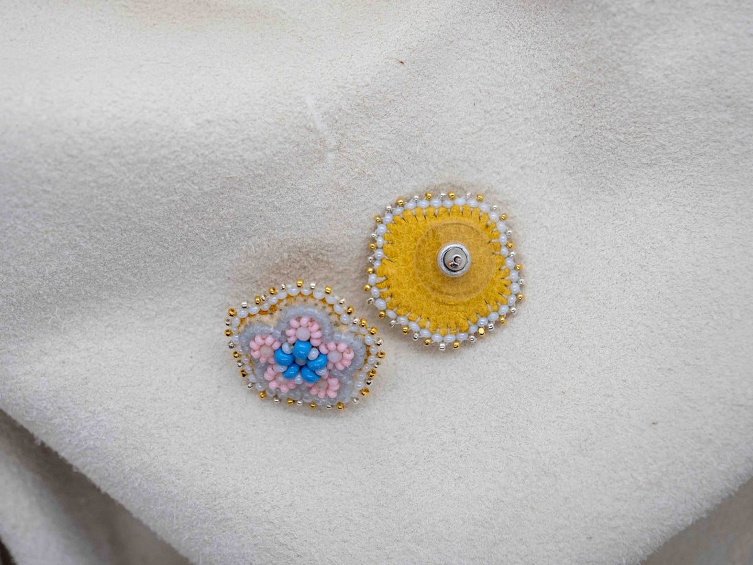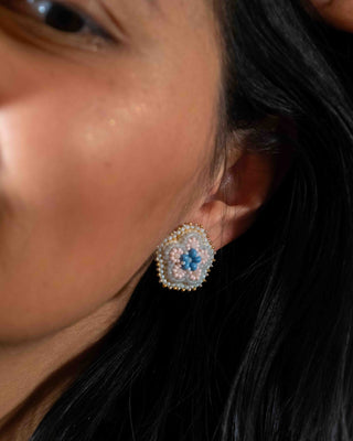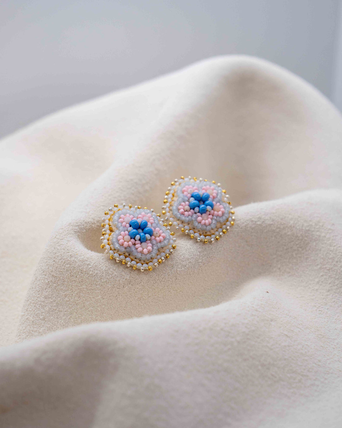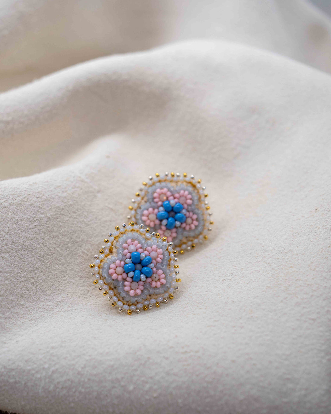 Handcrafted floral studs drawing inspiration from the botanical motifs woven into traditional Kichwa women's garments. Vintage beads of varying dimensions create a layered, dimensional effect that captures the delicate nature of indigenous artistry. TThese earrings represent a refined choice for collectors who recognize the value of authentic indigenous artisanship and intentional design.