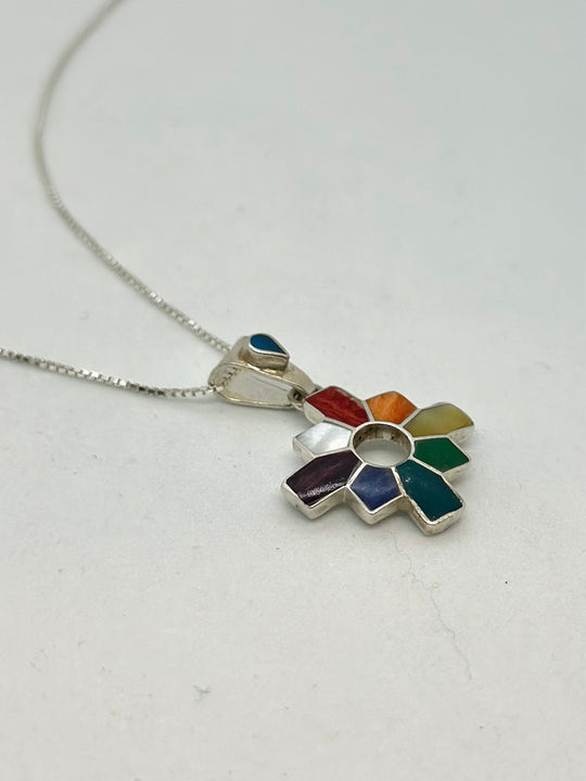 Handcrafted in Peru. Materials: Lapis Lazuli , Chrysocolla, Multicolor (includes lapis lazuli, Chrysocolla, semiprecious stones, Abalone & Spondyllus Shells, in different shades of color, 925 Silver Dimensions: Flower Diameter: 1.4 cm Length: 2.4 cm (...Regular price $64.99 -