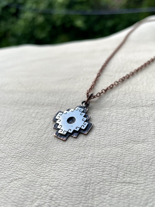 This product was carefully made in Peguche, Otavalo, Ecuador by self taught Kichwa artist Pedro Maldonado. Materials: Copper, Brass Hooks Dimensions: Length (incl. hook): 3.2 cm Width: 1.7 cmRegular price $44.99