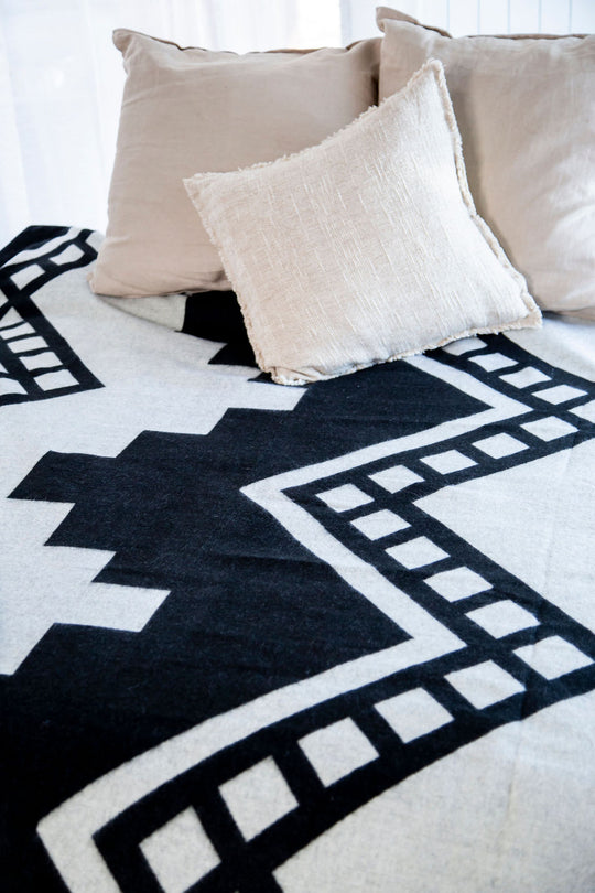 Blanket Designed by Yana Manta (Kinoo Arcentales Cajas). Made by the Lema Family in our Kichwa homelands. The entire production line of this collection is indigenous owned and operated. This design presents a strong and bold statement....Regular price $184.99 -