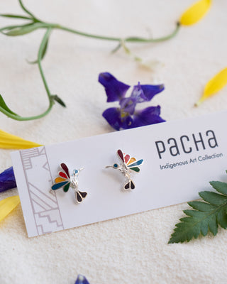 Delicate hummingbird earrings handmade in Peru. These birds are abundant in the Andes and are a symbol of joy and beauty. It is also said that hummingbirds carry the spirits of our ancestors to their resting place.