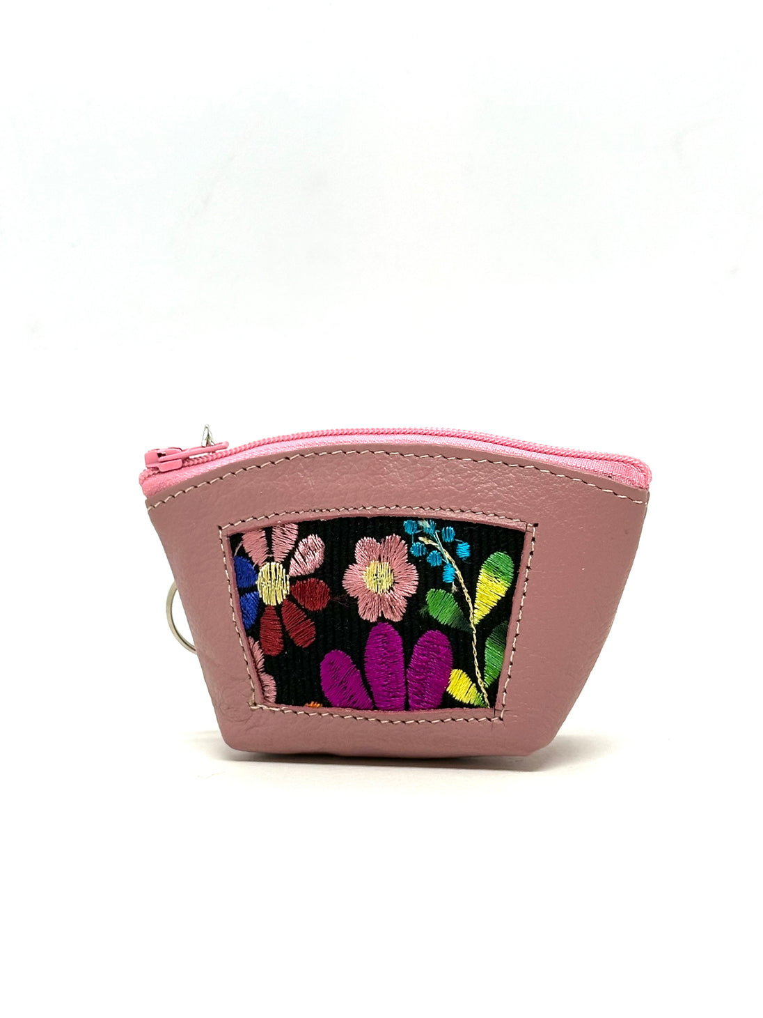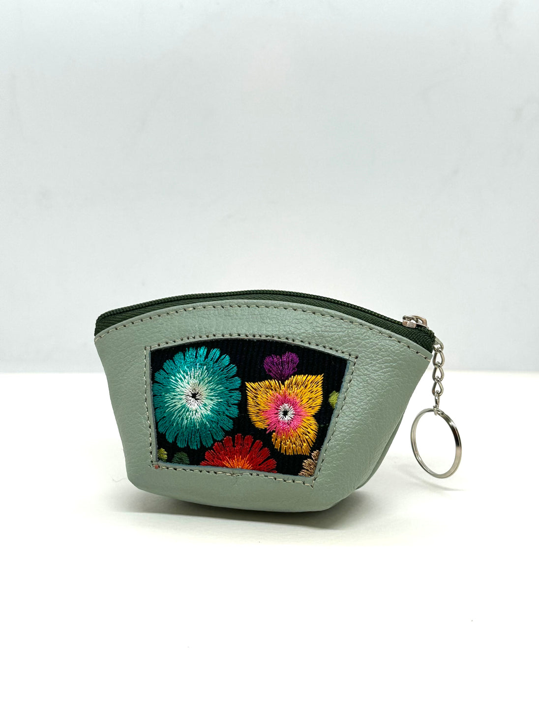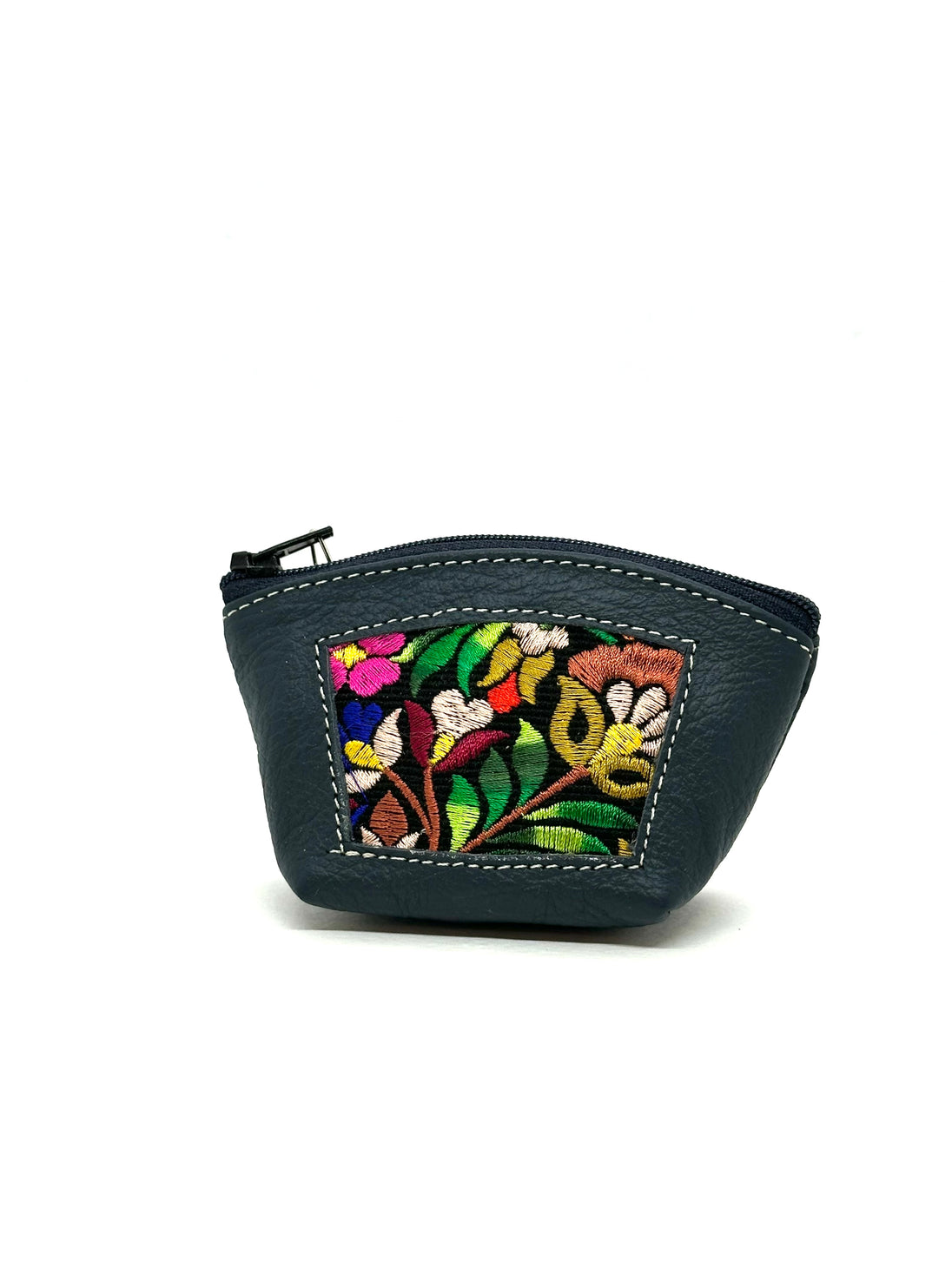 Leather, embroidered textile